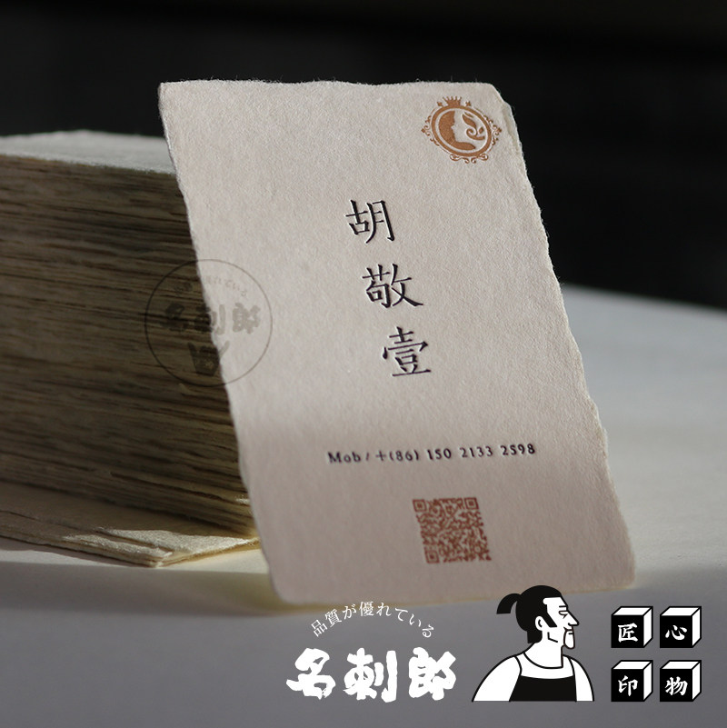 高檔藝術名片撕邊紙名片手工紙名片凹印名片高級特殊個人名片定製